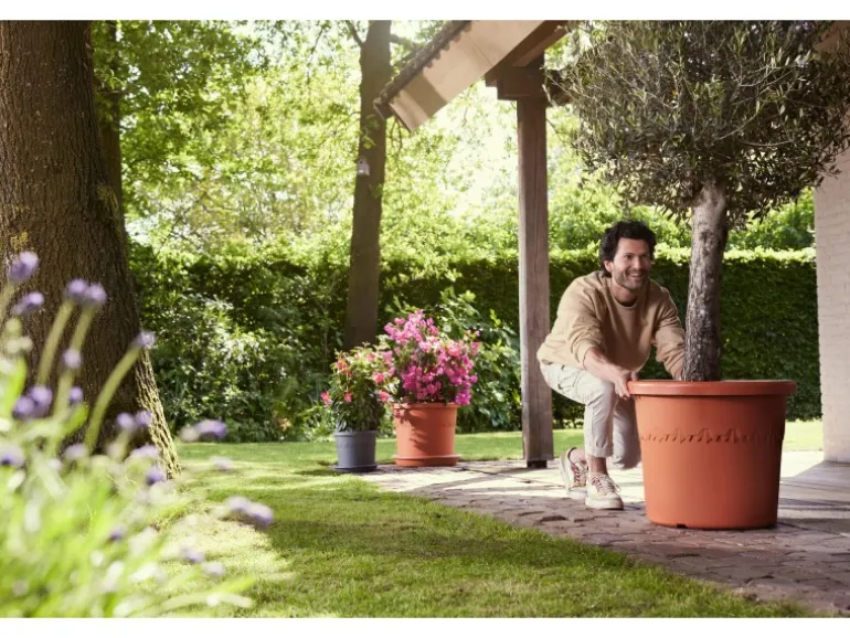 Der Elho Blumentopf Algarve Cilindro bringt Ihre Pflanzen stilvoll zur Geltung und verleiht Ihrem Garten oder Balkon einen Hauch mediterranen Flairs. Dieser großzügige Pflanzbehälter aus der Algarve-Kollektion besticht durch sein klassisches Design, die matte Oberfläche und ein dekoratives Blumenmotiv. Mit den integrierten Rollen können Sie den Blumentopf problemlos an den idealen Platz auf Ihrer Terrasse stellen und ihn bei Bedarf mühelos umstellen. Der spezielle Boden sorgt für eine hervorragende Entwässerung und Belüftung, sodass Ihre Pflanzen optimal gedeihen. Gefertigt aus langlebigem Kunststoff, ist der Blumentopf besonders robust und für den langjährigen Einsatz im Freien geeignet.