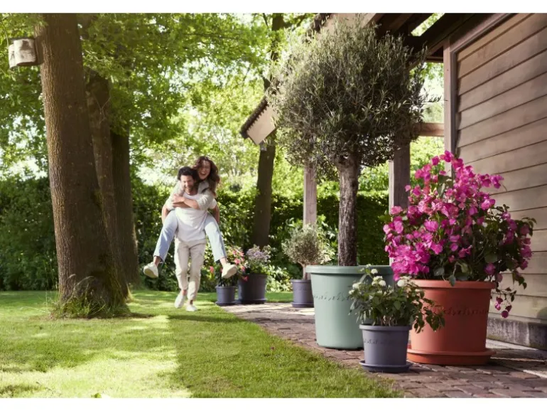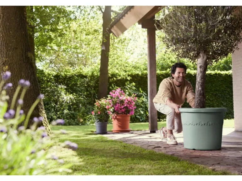 Der Elho Blumentopf Algarve Cilindro bringt Ihre Pflanzen stilvoll zur Geltung und verleiht Ihrem Garten oder Balkon einen Hauch mediterranen Flairs. Dieser großzügige Pflanzbehälter aus der Algarve-Kollektion besticht durch sein klassisches Design, die matte Oberfläche und ein dekoratives Blumenmotiv. Mit den integrierten Rollen können Sie den Blumentopf problemlos an den idealen Platz auf Ihrer Terrasse stellen und ihn bei Bedarf mühelos umstellen. Der spezielle Boden sorgt für eine hervorragende Entwässerung und Belüftung, sodass Ihre Pflanzen optimal gedeihen. Gefertigt aus langlebigem Kunststoff, ist der Blumentopf besonders robust und für den langjährigen Einsatz im Freien geeignet.