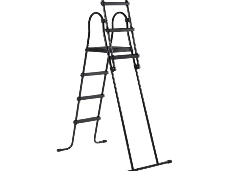 Die EXIT Poolleiter für Pools mit einer Rahmenhöhe zwischen 108 und 122 Zentimetern ist ein hervorragendes Hilfsmittel für den sicheren Ein- und Ausstieg aus dem Pool. Die schwarze Leiter hat einen Handlauf, an dem sich Kinder festhalten können, und die Treppe ist mit Anti-Slip ausgestattet, sodass man nicht ausrutschen kann, wenn die Leiter nass ist. Die Leiter ist mit einer Plattform in der Mitte ausgestattet, dank der Kinder entspannt über den Rand des Pools steigen können. Und auf der Außenseite des Pools können die Stufen ganz einfach hochgeklappt werden, sodass die Jüngsten nicht einfach in den Pool steigen können.