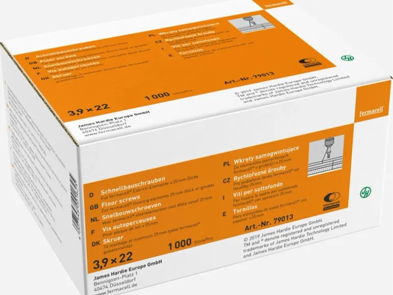 Die Fermacell Schnellbauschrauben wurden für die Einfachbeplankung von Gipsfaser-Platten auf Holz- und Metall-Unterkonstruktionen im Wand- und Deckenbereich und für die Verschraubung von Estrich-Elementen über 20 mm Gesamtstärke nach dem Kleberauftrag im Bodenbereich entwickelt. Durch durch Zink-Phosphatierung nach DIN 50942 bieten die Fermacell Schnellbauschrauben einen hohen Korrosionsschutz. Die optimierte Gewindegeometrie sorgt für leichte Verschraubbarkeit und durch die spezielle Kopfgeometrie lässt sich die Schraube optimal versenken.