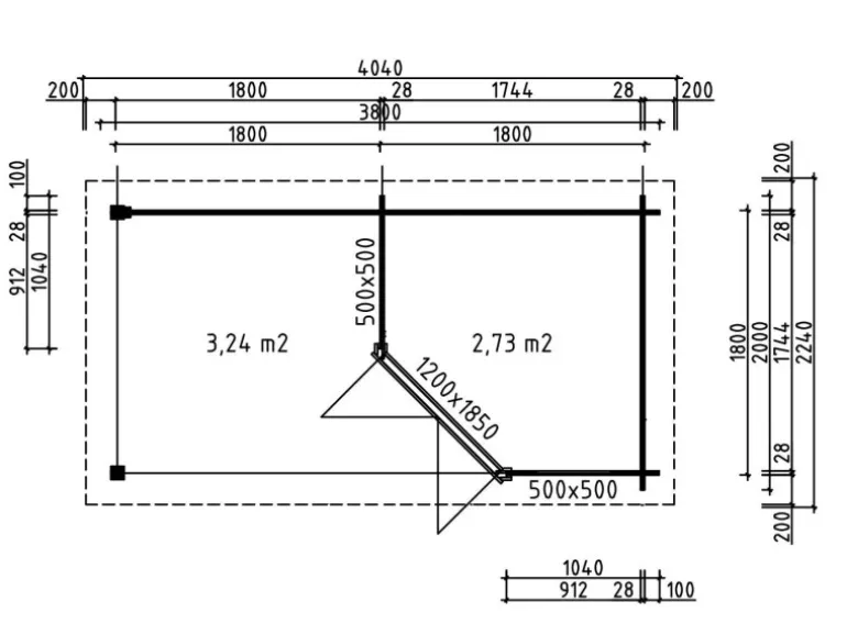 – Gartenhaus kann auch spiegelbildlich aufgebaut werden