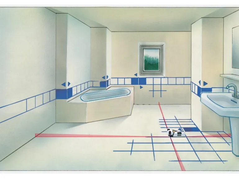 Für eine saubere Anwendung auf allen Oberflächen – auch mit Pins. Der Fliesen-Laser verfügt zusätzlich über Libellen zur Justierung des Gerätes und kann somit auch als Laser-Wasserwaage verwendet werden.