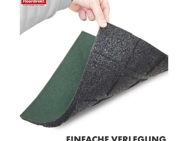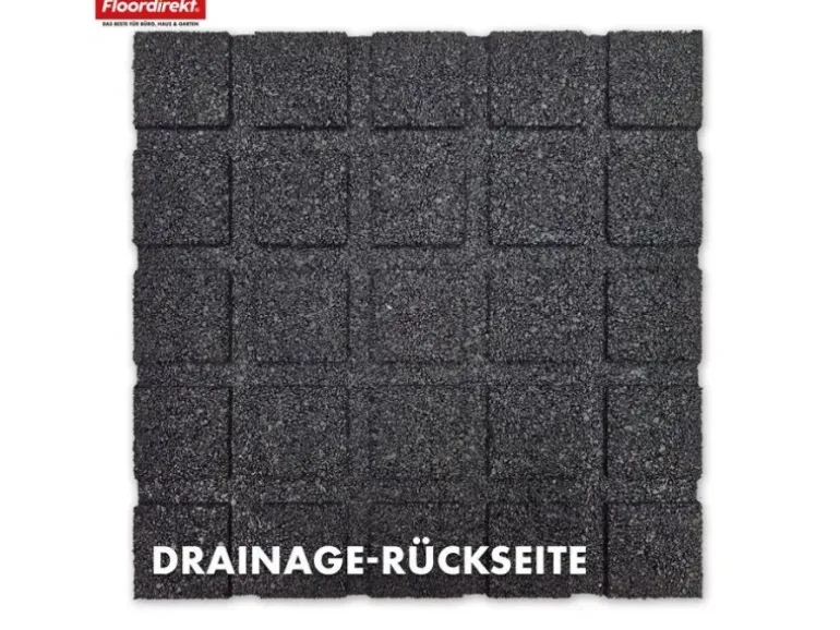 Die strukturierte Oberfläche bietet jederzeit sicheren Halt – auch bei Feuchtigkeit oder glatten Untergründen. Die Unterseite ist mit einem Drainagesystem ausgestattet, das Wasser effizient ableitet und so eine dauerhaft trockene, rutschfeste Oberfläche gewährleistet. Dadurch eignet sich die Fallschutzmatte perfekt für den Außenbereich, aber auch für feuchte Innenräume wie Keller, Lagerräume oder Eingangsbereiche.