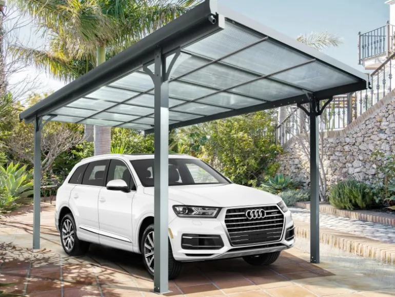 Sehr robuster Carport mit besonders stabilem Aluminium-Rahmen und Polycarbonatplatten