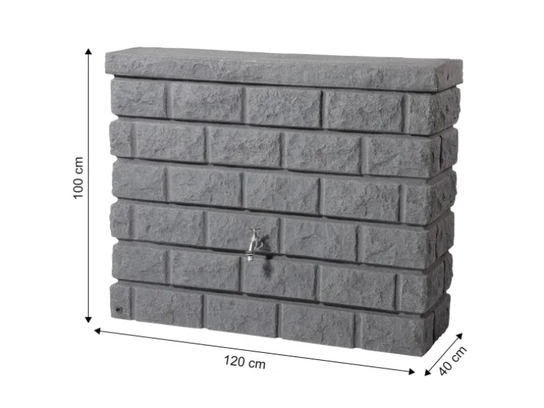 Der dekorative Regenwassertank ist mit seiner täuschend echten Steinoptik nicht nur ein Blickfang für Ihren Garten, sondern auch ein Unikat. Durch das spezielle Herstellungsverfahren und die matte, hochwertige Oberfläche ist jeder Wandtank ein stylisches Einzelstück, wie in der Natur. Zudem punktet der Wassertank mit einem hohen Speichervolumen von 400 l. Trotzdem lässt er sich platzsparend und dezent in Ihren Garten integrieren.