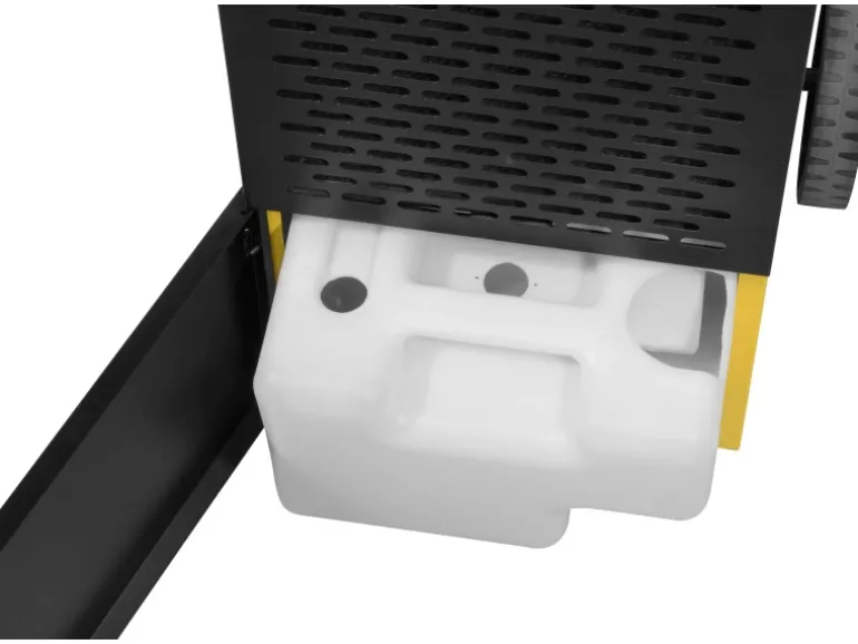 Bei einer Raumgröße von 50 – 120 m² kann er der Luft pro Tag bis zu 50 l Feuchtigkeit entziehen. Die gewünschte Luftfeuchtigkeit wird per Hygrostat eingestellt. Nach Erreichen der gewünschten Luftfeuchtigkeit greift die Auto-Stopp-Funktion ein. Der Bautrockner besitzt einen integrierten Wassertank (7 Liter) und einen Abflussschlauch für den Permanentbetrieb. Der Luftfilter ist leicht abwaschbar.