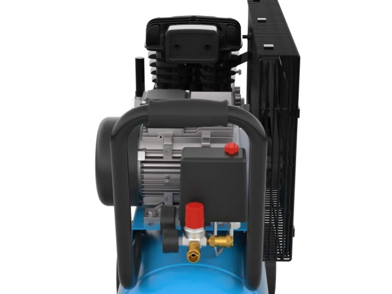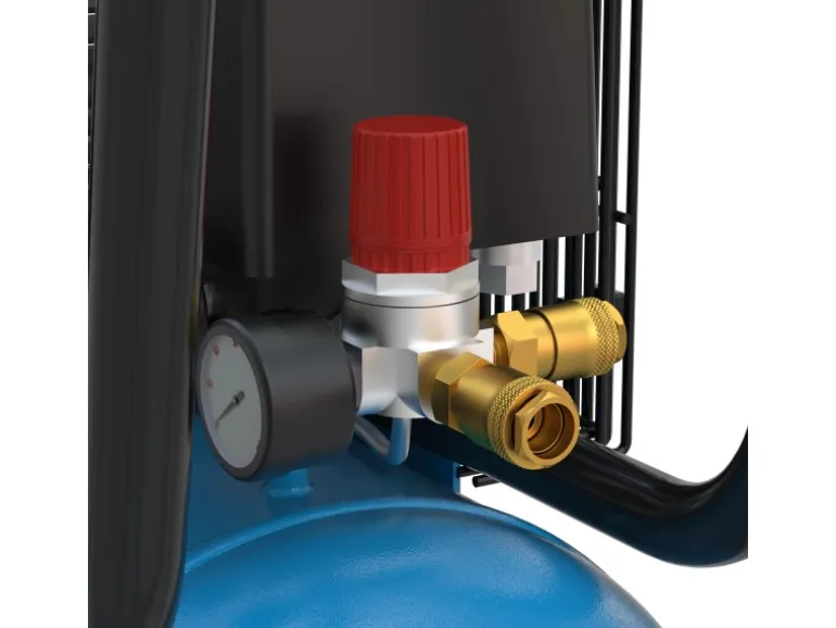 Dank der zwei Druckluftkupplungen ist das Anschließen von Werkzeugen und Geräten mühelos. Darüber hinaus verfügt der Kompressor über einen Nachkühler, ein Sicherheitsventil, ein Rückschlagventil, eine Kondensatablassschraube, einen Luftfilter und einen Überlastungsschutz, die zusammen für höchste Sicherheit und Effizienz sorgen.
