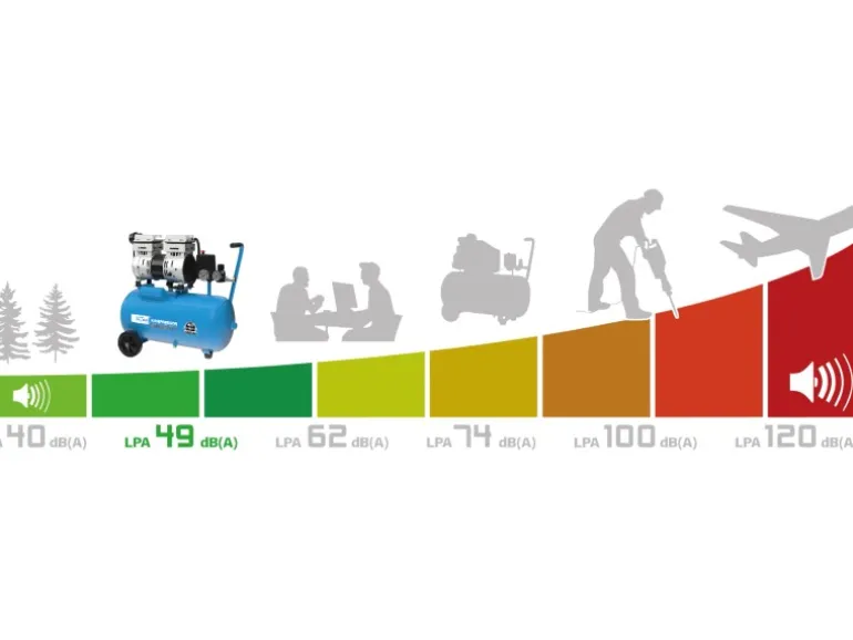 Das direktgetriebene, öl- und wartungsfreie 2-Zylinder-Aggregat erzeugt im Betrieb einen Schalldruckpegel von nur 49 dB(A) und ist daher deutlich leiser als viele andere Kompressoren. Der Airpower 150/8/24 gehört in jede Heimwerkerwerkstatt, ist aber auch bestens geeignet für den Einsatz auf Montage, in Büroräumen oder Mietshäusern und sorgt, kaum hörbar für saubere Druckluft. Der 24 l große Stahltank speichert ausreichend Druckluft, so dass der Kompressor nicht dauerhaft laufen muss.