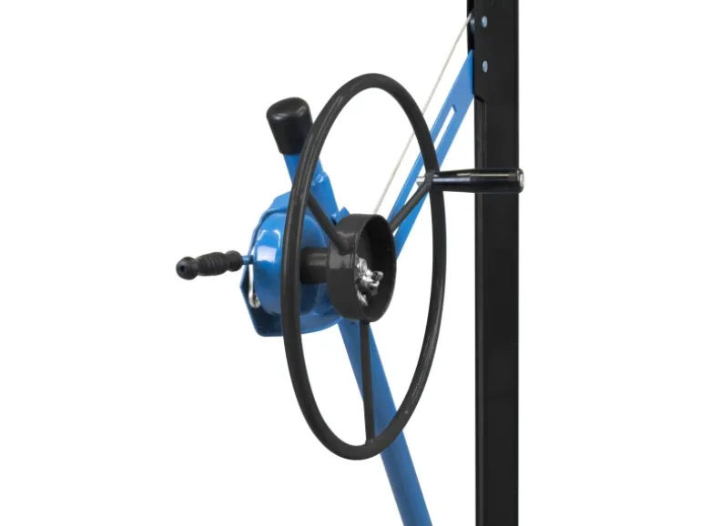 Ausgestattet mit 3 großen Lenkrollen mit Auslegerarm, Haltewinkel an den Lastarmen und hochwertigen Gummiauflagen für sicheren Halt der Platten. Der praktische Kurbelmechanismus ist komplett vormontiert. Der Lift lässt sich platzsparend aufbewahren und transportieren.