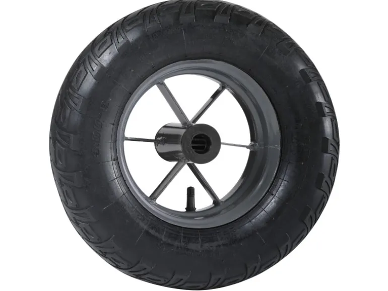 Dieses hochqualitative, rollengelagerte Luftrad mit 400 mm Durchmesser hat eine Speichenfelge aus Metall.
