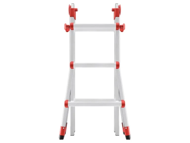 Sie ist als Anlege- und Schiebeleiter sowie als beidseitige Steh- und Treppenleiter verwendbar und sprossenweise höhenverstellbar.
