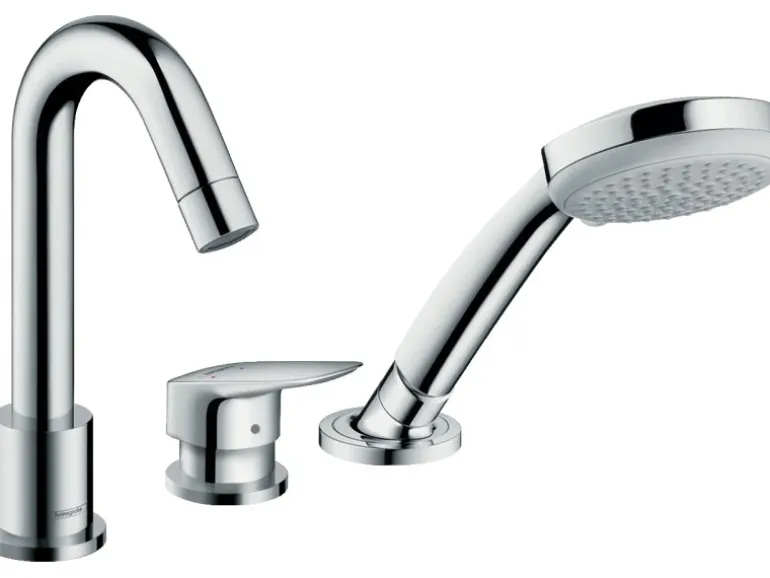 3-Loch Einhebel-Wannenrandmischer, Handbrause, Brauseschlauch, Brausehalter.