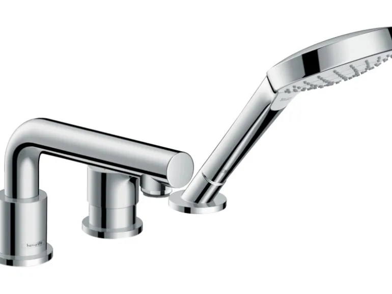 3-Loch Einhebel-Wannenrandmischer, Handbrause, Secuflex Schlauchgarnitur.