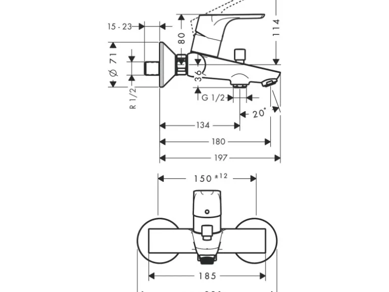 – Durchflussmenge für Wanneneinlauf bei 3 bar: 22 l/min