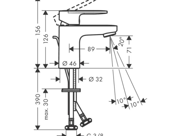 Einfache Installation: Die Armatur wird über flexible Anschlussschläuche (G 3/8) mit den Wasseranschlüssen verbunden (Größe: DN15)