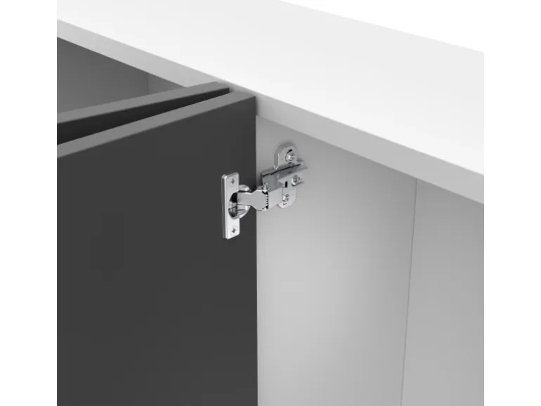 Topfscharnier mit einem Topfdurchmesser von 26 mm für kleine Türen. Durch die integrierte Höhen-, Tiefen, und Auflagenverstellung lässt sich der Sitz der Tür sowie das Fugenbild einfach und genau justieren. Einsetzbar für Türen mit einem Mittelwandanschlag und einer Topfbohrung von 35 mm Durchmesser.