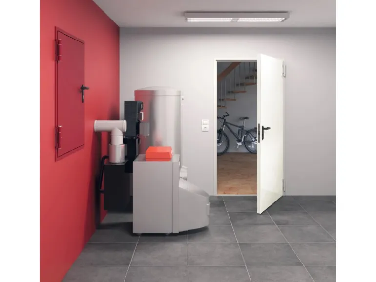 Dank der doppelwandigen, feuerhemmenden Mineralwolldämmung des Türblatts, ist die Tür für mindestens 30 Minuten brandbeständig. Zudem ist die Tür stahlverstärkt und enthält 2 Sicherungsbolzen, wodurch das Türblatt auch im geschlossenem Zustand besonders stabil mit dem Türrahmen verbunden ist.