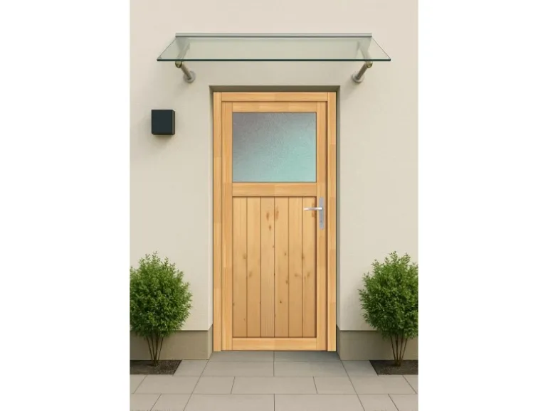 Bitte beachten Sie, dass bei einer Montage der Holz-Nebeneingangstür in unbeheizten Räumen, wie z. B. an Carports, Gartenhäusern oder ähnlichem, aufgrund der natürlichen Holzeigenschaften (Quellen und Schwinden) ein Verzug an der Tür auftreten kann. Dies stellt keinen Reklamationsgrund dar.