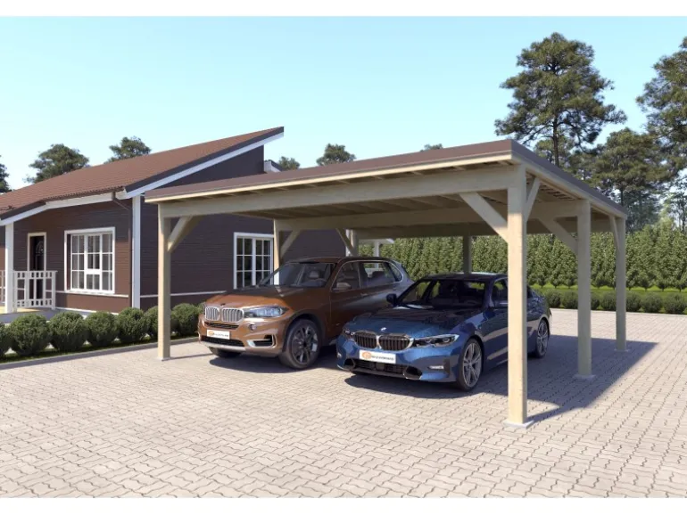 Die Carports von Holzbrüder werden als komplettes Set geliefert. Im Preis ist alles enthalten: hochwertiges Naturholz aus dem Norden, ein Dunkelbraun Ruukki-Stahlblechdach, Befestigungsmaterial sowie werkseitig vorgefertigte Bauteile. Sie müssen nichts separat besorgen – einfach bestellen und aufbauen.