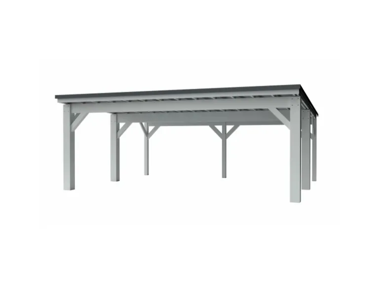Die Carports von Holzbrüder werden als komplettes Set geliefert. Im Preis ist alles enthalten: hochwertiges nordisches Holz in Reinweiß lackiert, ein dunkelgraues Ruukki-Stahlblechdach, Befestigungsmaterial sowie werkseitig vorgefertigte Bauteile. Sie müssen nichts separat besorgen – einfach bestellen und aufbauen.