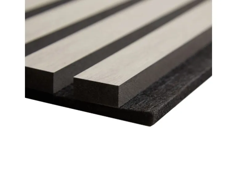 Oasen. Die auf Filz befestigten Holzlamellen absorbieren Schall effizient, was die Raumakustik spürbar verbessert und für eine ruhige, angenehme Atmosphäre sorgt. Gleichzeitig überzeugt das Paneel durch sein minimalistisches und zugleich edles Design, das jedem Raum einen modernen Touch verleiht. Egal ob als einzelner Hingucker im Wohnzimmer oder als Wandverkleidung im Büro