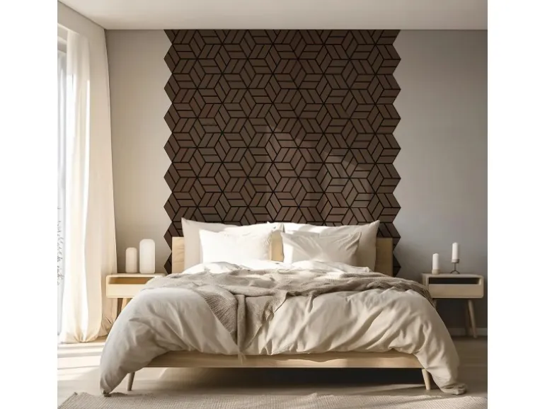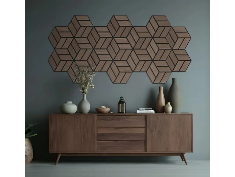 15 Akustikpaneele je 30x26x2 cm in moderner Hexagonform im Walnuss Ton