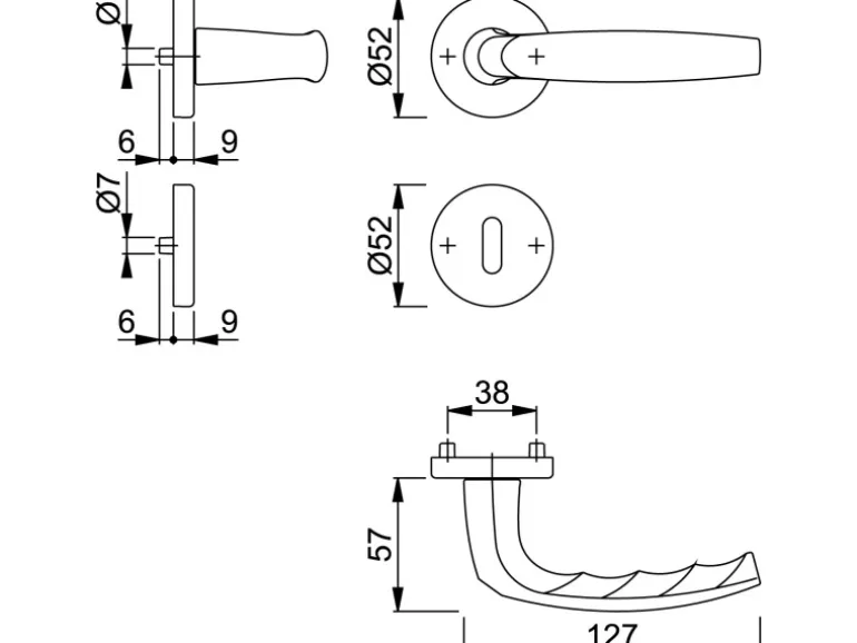 – Ausführung: Türgriffe lose, Rückholfedern rechts und links verwendbar