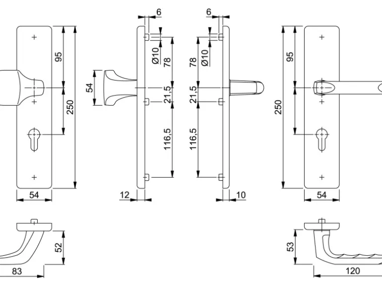 – Lagerung: außen gekröpfter Knopf fest, ummontierbar, innen Türgriff lose,