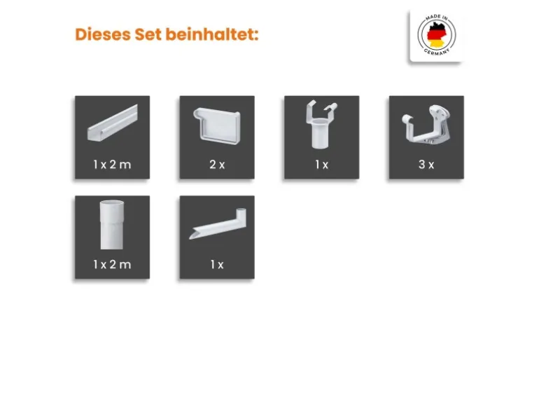 Zusatznutzen: Alle Teile für Dachentwässerung in einem Set, kein mühsames Zusammensuchen nötig