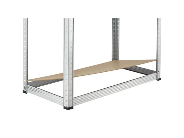 Die beiden Metallregale lassen sich durch die zweiteiligen Streben auch als halbhohe Regale oder als Werkbänke aufbauen. Ideal, wenn Sie die beiden Schwerlastregale unterhalb einer Treppe oder in einer Dachschräge aufstellen möchten.