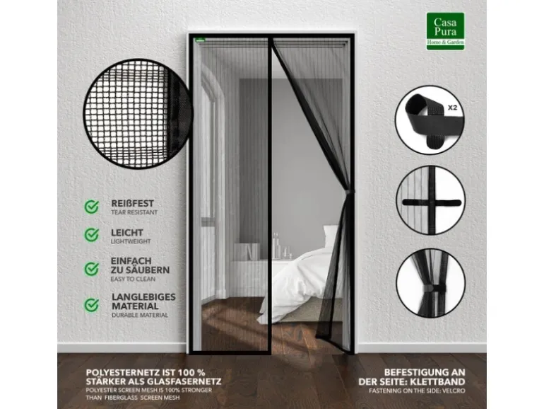 „Johnny“ und „Sam“ sind in verschiedenen Größen erhältlich. Somit wird sichergestellt, dass Sie für jede Türöffnung die passende Variante finden. Leicht, reißfest, schnell anzubringen und sorgfältig verarbeitet: Die Fliegengitter freuen sich darauf, auch Ihr Zuhause sicher vor Insekten zu schützen sowie Ihnen zeitgleich den Genuss einer frischen Brise nicht zu verwehren.