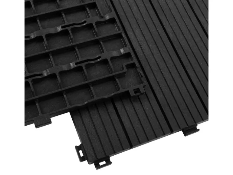 Unsere Klickfliesen sorgen für eine natürliche Optik, welche jede einzelne Fliese überaus formstabil macht und sich weiterhin unempfindlich gegenüber Pilzen und Schädlingsbefall zeigt. Ein Unterbau aus Kunststoff mit Drainagefunktion schafft die Distanz zum Boden, die notwendig ist, um zügiges Abfließen von Flüssigkeiten zu gewährleisten. Die WPC-Klickfliesen sind UV-geschützt und können ohne Weiteres das ganze Jahr im Freien liegen.