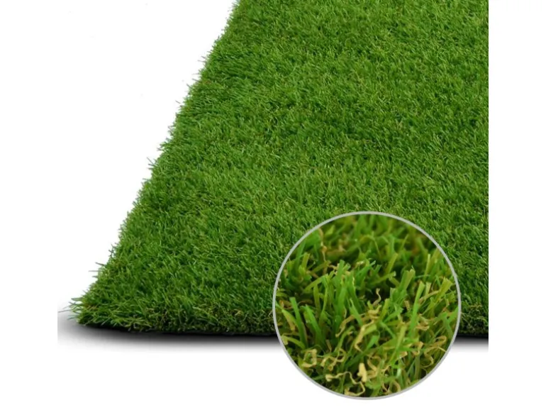 Der 35 Millimeter hohe Kunstrasen für Balkon, Terrasse und Garten ist in zwei Breiten und bis zu einer Länge von 20 Metern verfügbar. Neben einem individuell angefertigten Zuschnitt ist der Kunstrasenteppich auch in vielen festen Größen erhältlich. Positive Eigenschaften des Rasenteppichs sind seine Wetterfestigkeit und UV-Resistenz, der besonders geringe Pflegeaufwand. Die Kunstrasen-Meterware ist frei von Blei und Kadmium.