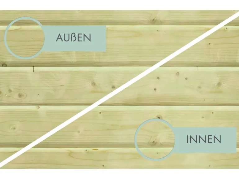 Der Massivholzpool aus 38 mm starken kesseldruckimprägnierten und damit witterungsbeständigen Blockbohlen bietet Ihnen Sommerfrische im eigenen Garten. Dank einer Wassertiefe von 111 cm und einem Volumen von 11 m³ bietet er ausreichend Platz für jede Anforderung. Die Diagonale von 433 cm und ein Innenmaß von (B x T) 350 cm x 350 cm stehen für sich. Die Lieferung erfolgt inkl. einer 0,6 mm starken blauen Poolfolie, in eine hochwertige Einhängebiese eingeklipst wird. Das reduziert das Risiko von Falten in der Folie enorm und macht einen evtl. notwendigen Folientausch einfach. Dies ist ein großer Vorteil zu herkömmlich vernagelten Poolfolien. Das Schutzvlies unterhalb des Pools ist 400 g/m² stark. Die Lieferung erfolgt stets mit einer Einhängeleiter aus hochwertigem Edelstahl. Das Pooldeck ist 26 mm dick und bietet einen schönen Abschluss an der Oberkante.