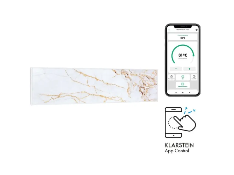 Klarstein Wonderwall Air Art Smart Infrarotheizung 120×30 cm 350 W Wandinstallation App-Steuerung Motiv Marmor Weiß