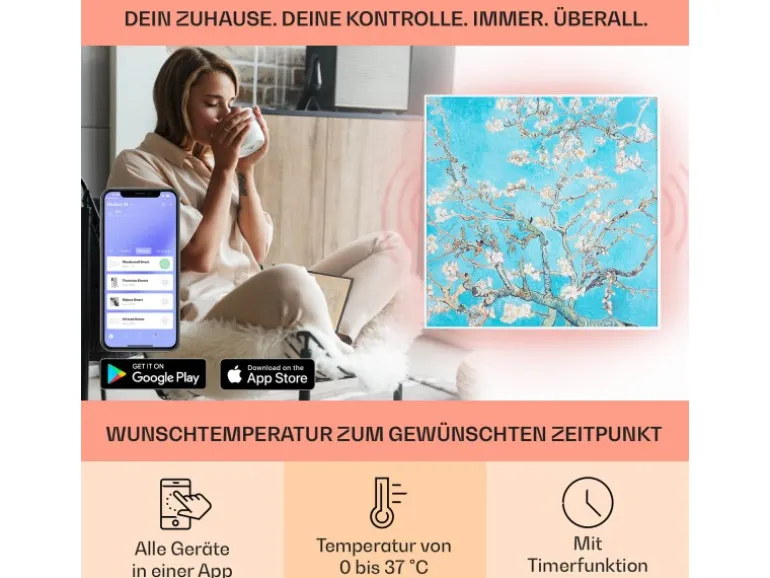 Be the first to review “Klarstein Wonderwall Air Art Smart Infrarotheizung 60×60 cm 350 W Wandinstallation App-Steuerung Motiv Mandelblüten Weiß” Antworten abbrechen
