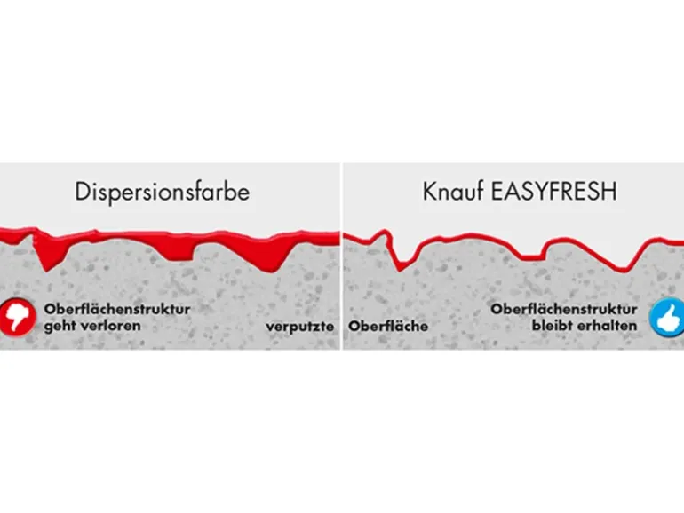 Dabei ist Easyfresh hochdeckend und zeichnet sich durch eine hohe Abriebfestigkeit aus. Die Atmungsaktivität von EASYFRESH wirkt sich positiv auf das Raumklima aus.
