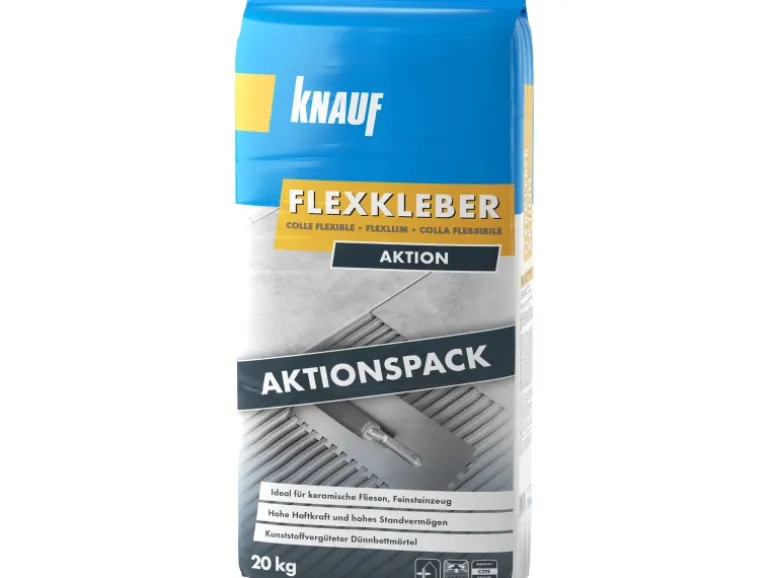Dieser flexible Kleber von Knauf ist besonders haftstark, weist eine hohe Verarbeitungssicherheit auf und muss lediglich mit Wasser angemischt werden.