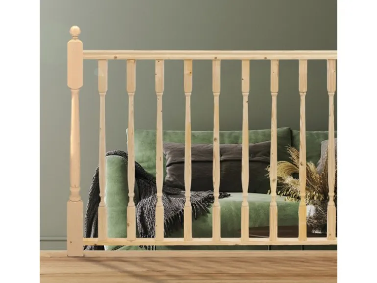 Mit diesem montagefertigen Set können Sie 2 laufende Meter Geländer installieren. Es ist möglich, mehrere Sets miteinander zu verbinden. Jedes Element kann mit einer Holzsäge auf die gewünschte Länge zugeschnitten werden.