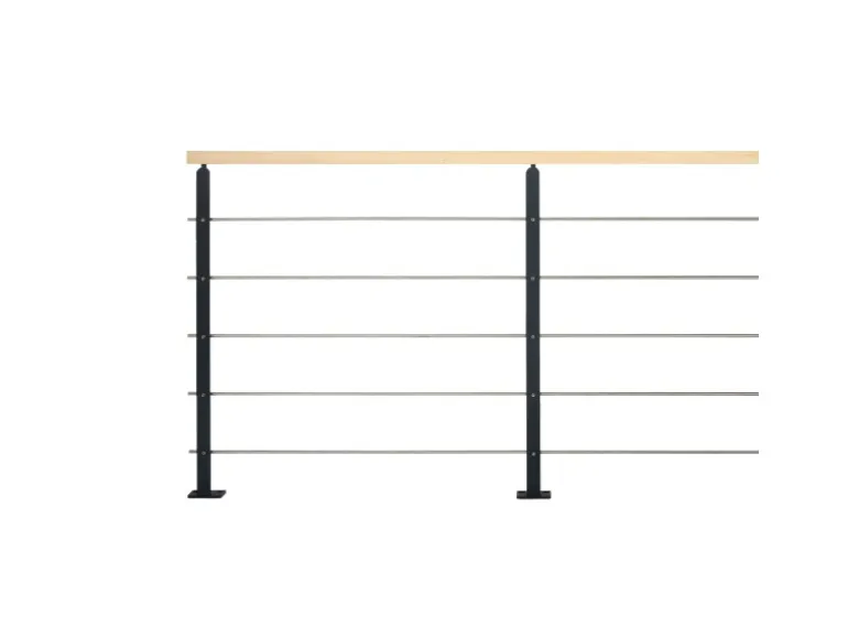Pfosten aus schwarzem sandgestrahltem Stahl und Handlauf aus lackierter Buche oder aus Stahl