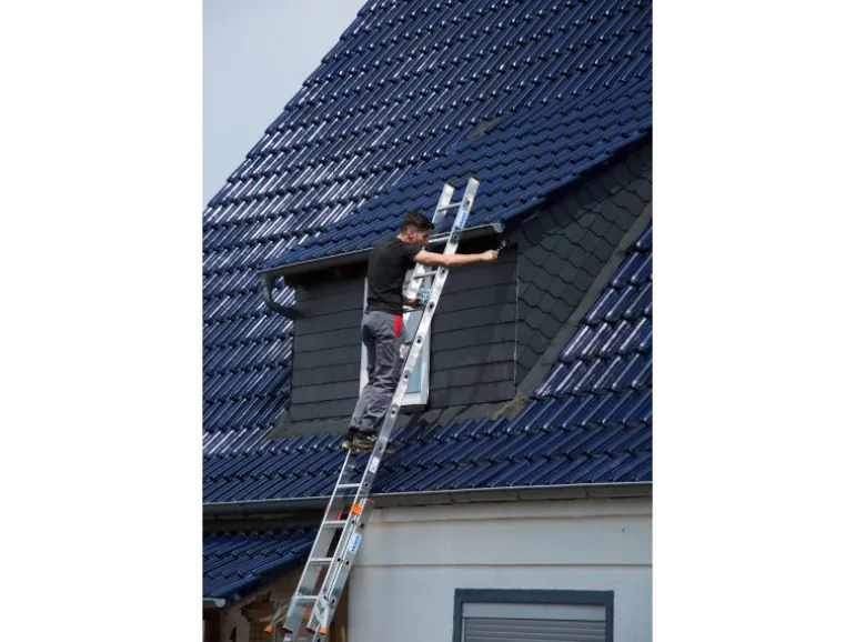 Dank der stabilen 32-fach verbördelten Sprossen-/Holmverbindungen ist diese Leiter ein langlebiger Begleiter.