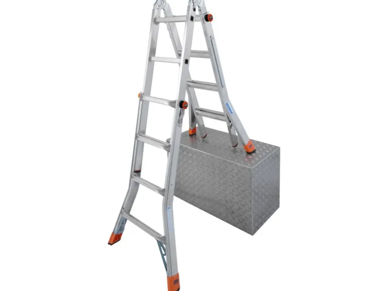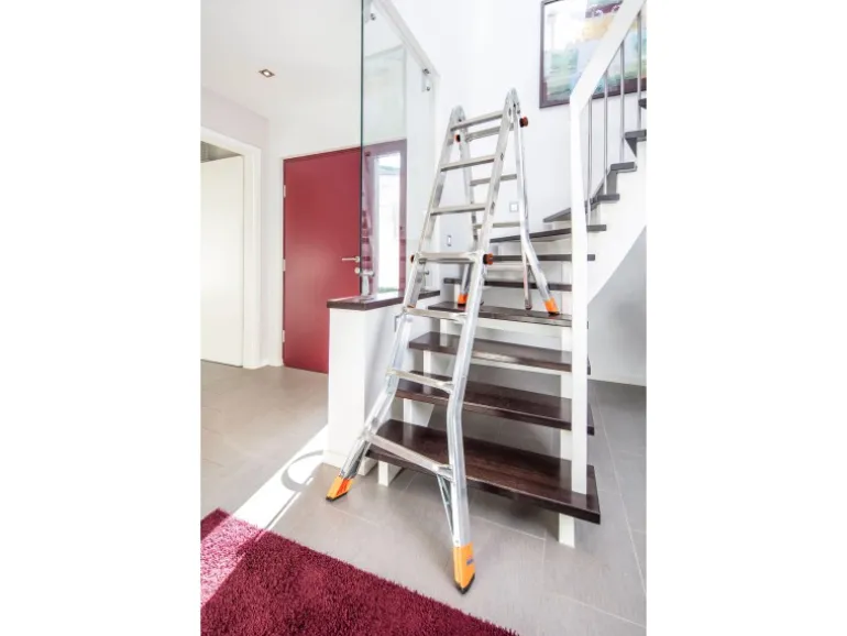 Einsetzbar als Anlege-, Doppel-Stehleiter und Arbeitsbühne