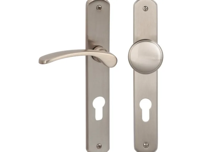 Langschildgarnitur „Amos-LS“ Eingangstüren Edelstahlfarbig satiniert DIN Rechts