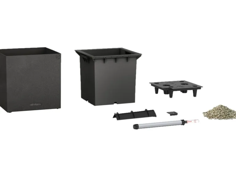 Lieferumfang1x Canto Stone low, inkl. Bewässerungssystem, Pflanzsubstrat Lechuza®-Pon als Drainageschicht und Pflanzeinsatz mit Griffmulden.