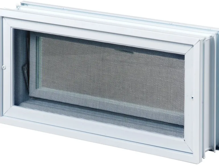 Lüftungsfenster für zwei Glasbausteine in Glassteinwänden