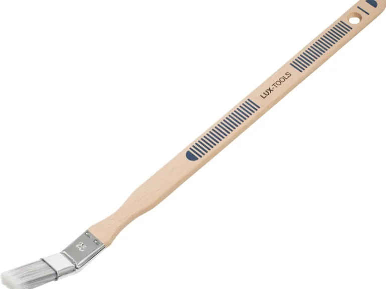 Der LUX-TOOLS Eckenpinsel ist ein Arbeitsgerät zum Streichen von Heizkörpern und Raumecken. Durch seine Premium-Qualität ist er für die häufige Nutzung geeignet. Er eignet sich insbesondere zur Anwendung mit Lacken. Ausgestattet ist er mit einem 25 mm breiten Borstenkopf, der von einer hochwertigen Zwinge eingefasst ist. Die verwendeten Kunstborsten besitzen eine hohe Formstabilität und sind leicht zu reinigen. Die abgewinkelte Form und der lange Stiel ermöglichen Ihnen das Erreichen schwer zugänglicher Flächen. Der flache Griff besteht aus FSC®-zertifiziertem Holz. Dank der integrierten Gripzone liegt er sicher in der Hand und lässt sich angenehm führen. Mit der praktischen Öse können Sie ihn nach Gebrauch aufhängen.