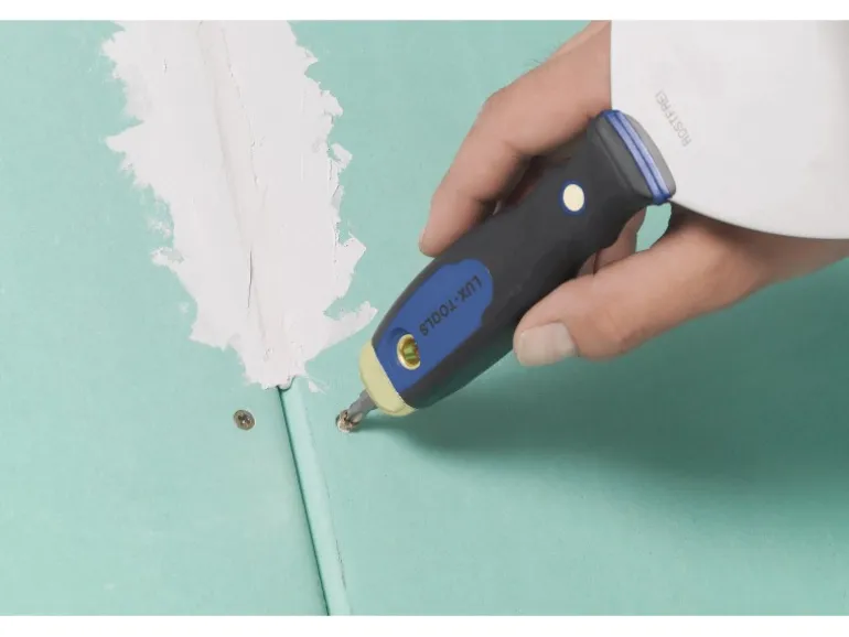 Die LUX-TOOLS Trockenbauspachtel mit Softgriff 150 mm rostfrei ist speziell geeignet um Gipskarton-Fugen zu verspachteln. Durch einen zusätzlichen festen Bit am Griffende können vorstehende Schraubenköpfe direkt nachgezogen werden. Die Trockenbauspachtel hat ein rostfreies Edelstahlblatt mit einer Breite von 150 mm und einen 2-Komponenten-Softgriff mit festem Bit (PH2).