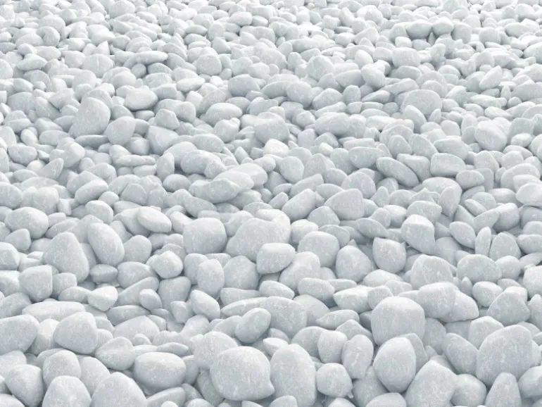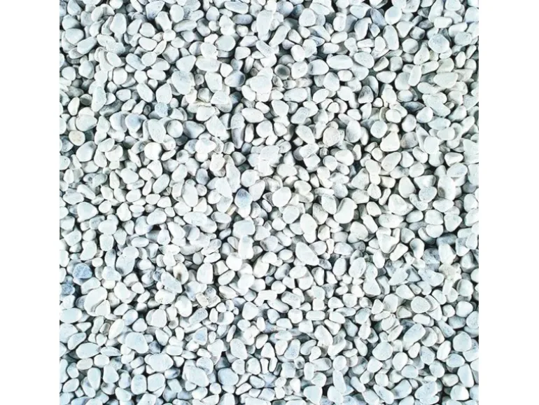 Der Carrara Kies ist eine weiße Kiesart aus dem berühmten Marmorsteinbruch Massa Carrara in Italien. Die runde Form erhält der Marmorkies durch das Bearbeiten gebrochener Marmorbrocken in einer Trommel. Runde Kiese eignen sich besonders für wenig genutzte Bereiche, da sich diese aufgrund der runden, glatten Oberfläche kaum verdichten.
