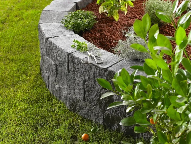 Mit dem Vigneto Mauerstein-System lassen sich gerade, eckige sowie runde Mauerverläufe einfach und problemlos realisieren. Es eignet sich sowohl zum Einfassen von Sitzplätzen und niedriger Hänge als auch für die elegante Beet- und Grundstücksabgrenzung. Hierbei erleichtern die handlich maßhaltigen Steine den Aufbau und sorgen für beste Ergebnisse bei geringem Aufwand. Zudem ergibt die gebrochene und gekollerte Oberfläche eine sehr hochwertige, moderne Optik. Das Versatzmaß beträgt 24 cm.