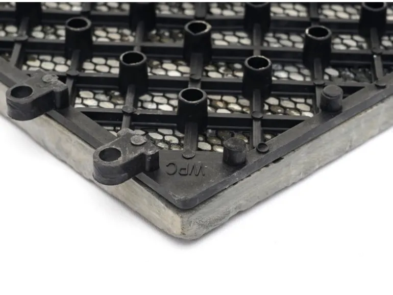 Die Fliesen haben je auf zwei Seiten Ösen bzw. Stifte, die sich ganz leicht ineinanderstecken lassen und trotzdem sicheren Halt bieten. Die Steinelemente sind auf einem gitterartigen Unterbau mit Noppen aus Kunststoff aufgebracht, sodass eine Belüftung und der Abfluss von Wasser unter den Fliesen gewährleistet ist. Die robusten und wetterfesten Natursteine haben eine barfuß-freundliche, gleichmäßige und pflegeleichte Oberfläche. Je nach Geschmack können auch Fliesen mit unterschiedlicher Steinoptik innerhalb des Verlegesystems miteinander kombiniert werden.